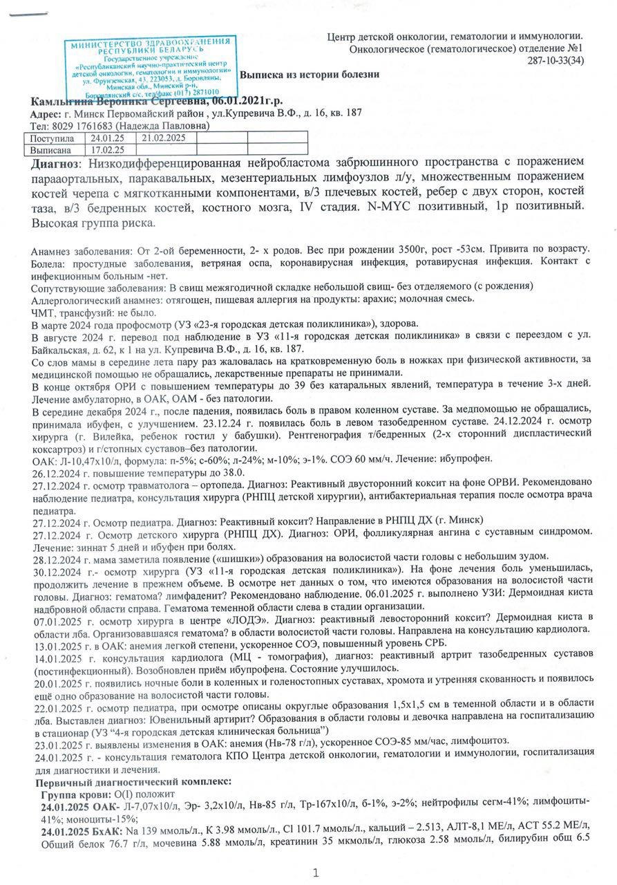Диагноз: нейробластома забрюшинного пространства 🧬.