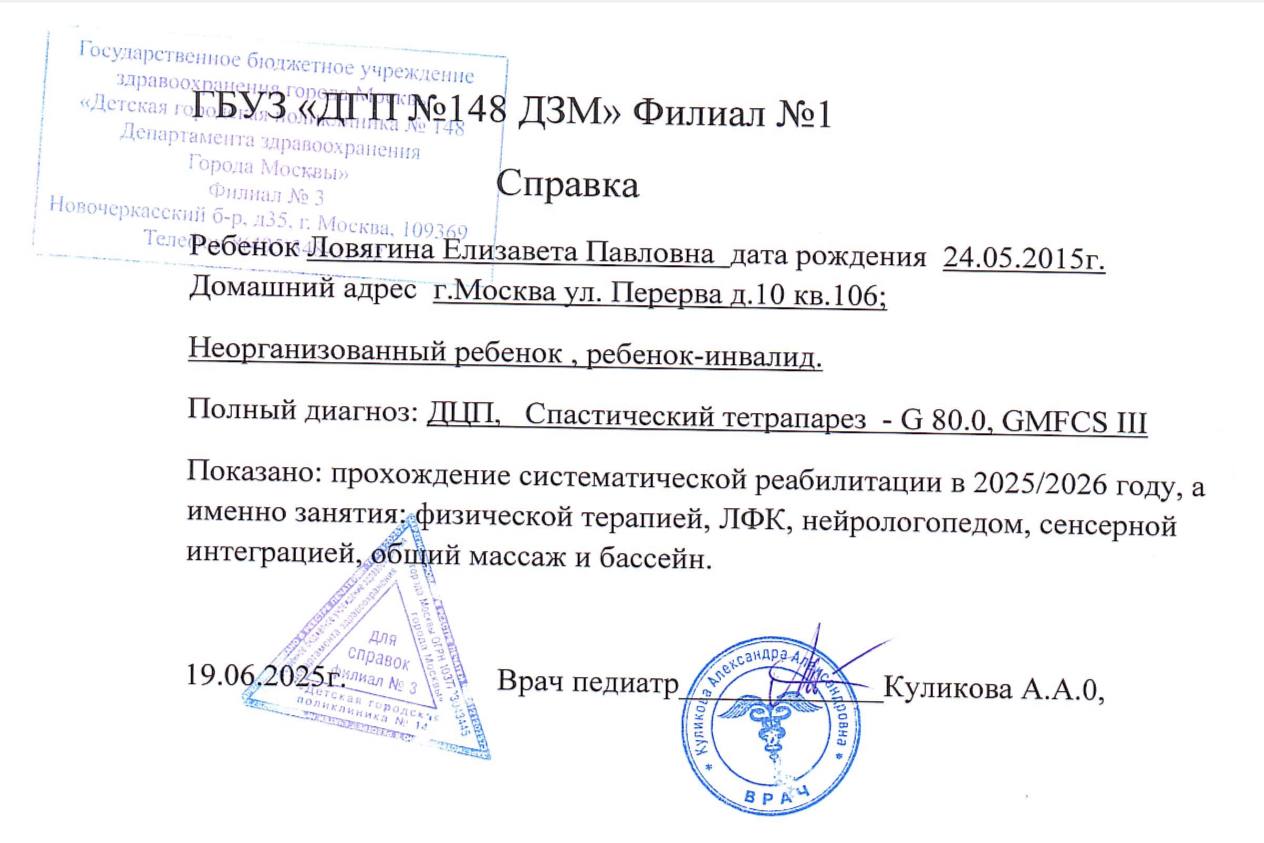 Однажды мы нашли Детский центр «Родник» в Москве 🏥🌱. Первый курс дал такой скачок, что мы плакали от счастья 😭🙌. С тех пор — только туда. Всё, что могли, мы продали, заняли, брали кредиты 🏚️📉. Потому что только там Лиза оживает 💡.