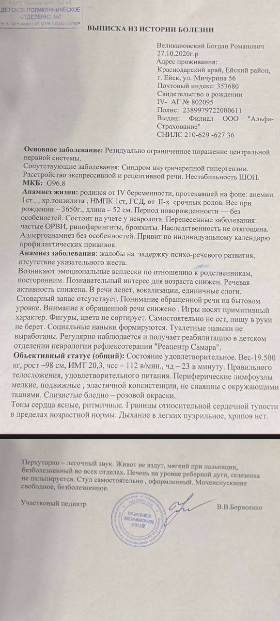 У Богдана — неврологическая симптоматика с первого дня: