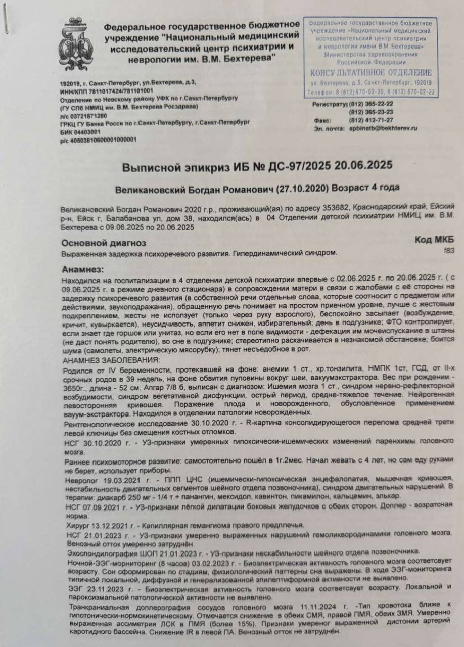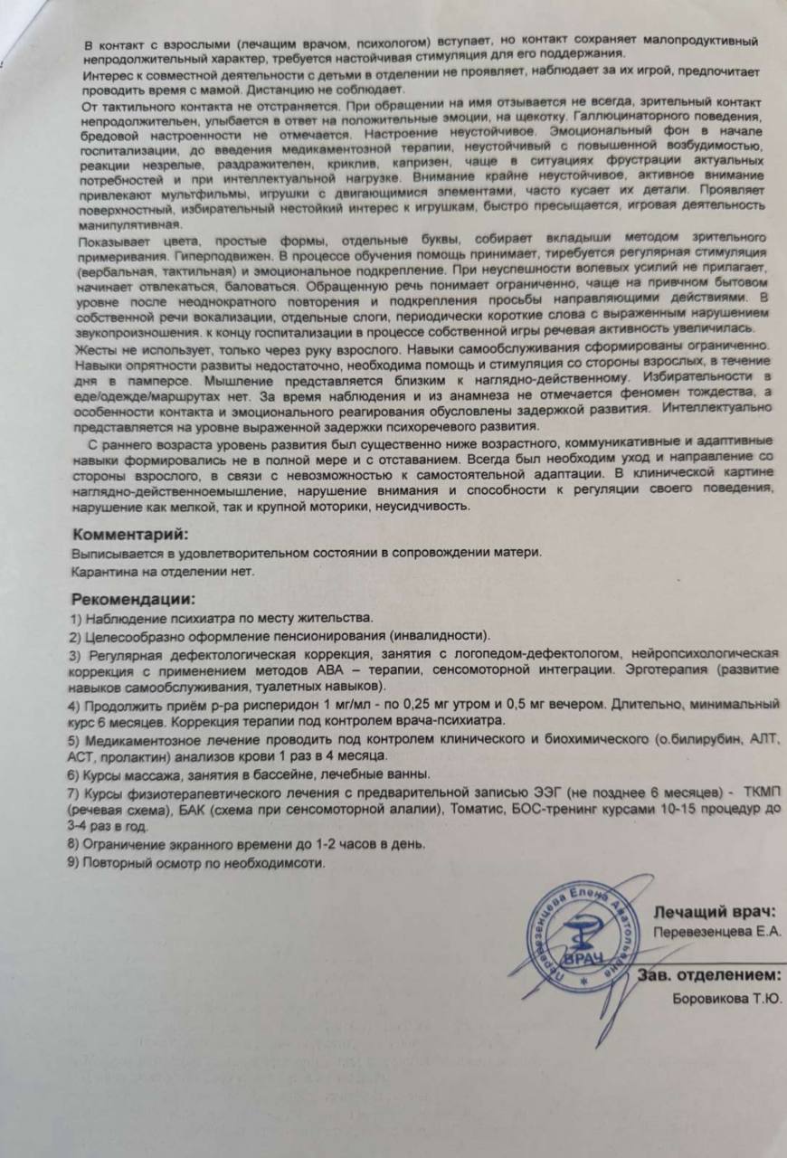 Диагноз: выраженная задержка психоречевого развития, гипердинамический синдром.