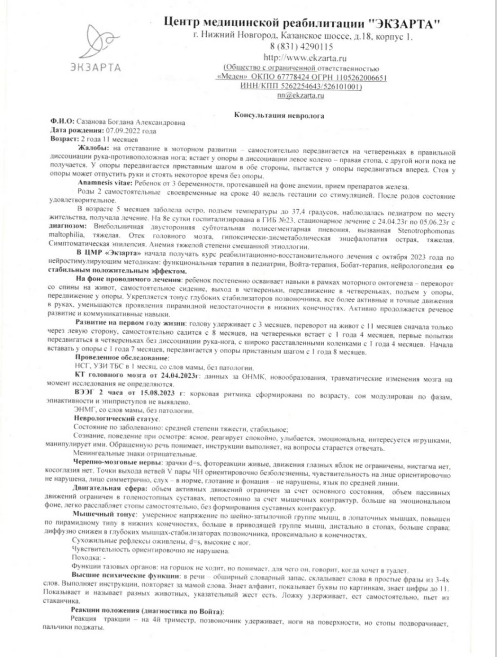 📍 Врачи сказали, что помочь Богдане может лечение в клинике «Меден» 🏥. Там готовы провести курс реабилитации, который улучшит работу мышц, поможет снять спастику, укрепить позвоночник, развить речь и двигательные навыки 🌟.