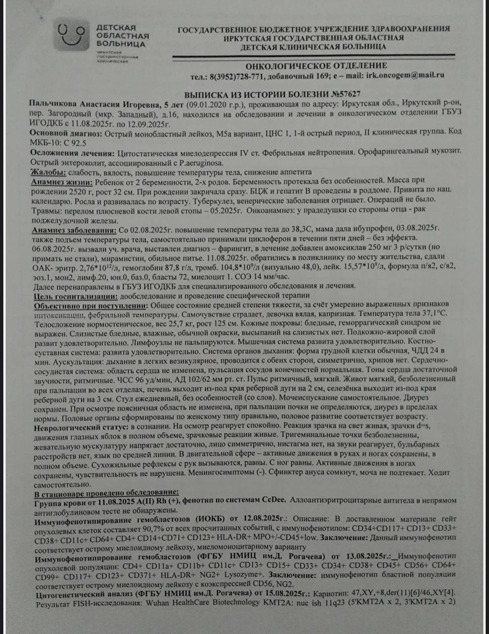 Дальше — третий блок химии… и трансплантация костного мозга 🧬.