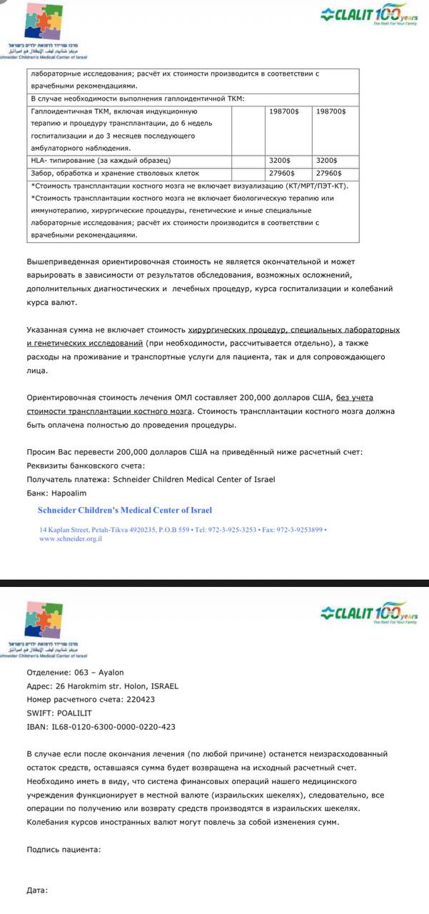 Израильская клиника «Шнайдер» 🇮🇱 готова принять нас и продолжить лечение 🙏.