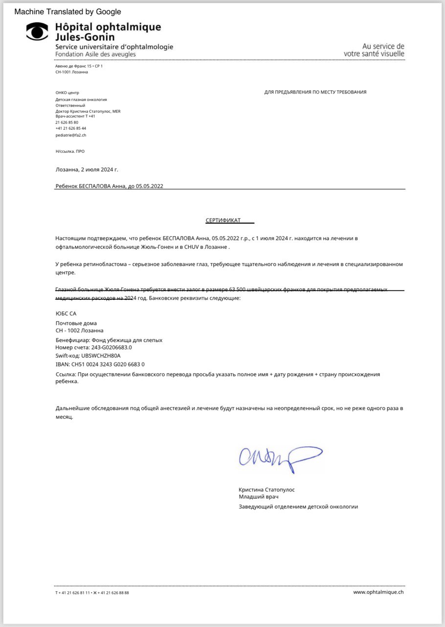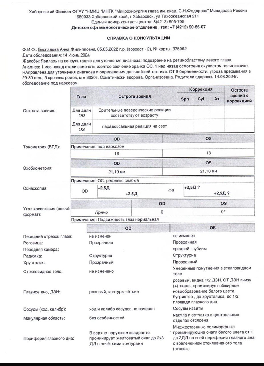 Врачи предложили нам лишь одно — удаление глаз. Но мы не можем смириться с этим. Мы нашли клинику в Швейцарии, где есть шанс спасти мою доченьку, дать ей шанс на жизнь и избавить её от мучений. 💖 Но лечение стоит огромную сумму — 2.175.000 рублей, и у нас нет таких средств. 😞