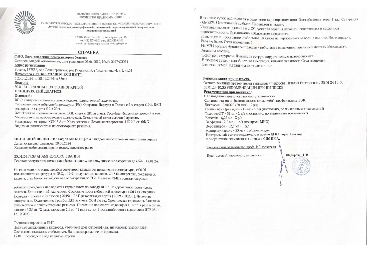 А вы не обращались в Новосибирск в институт имени Мешалкина. Хирурги там творят чудеса. У дочери был очень сложный порок сердца Тетрада фалов. Везде отказали, а там сделали. Живёт работает, двое детей. Это было в 90 году. Сейчас там вообще всё очень хорошо делается. Там есть лучший детский кардиохирург России Горбатых Юрий Николаевич. Приезжала туда учиться и Европа и Азия, и Израиль, иГермания. Обратитесь, не пожалеете.