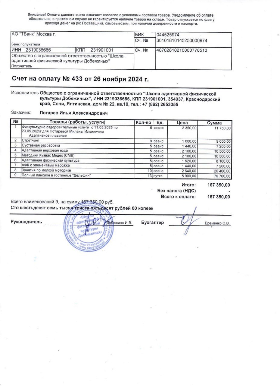 В первые два года мы прошли множество реабилитаций в Твери, занимались массажами, ЛФК, плаванием. 🏊‍♀️ Но этого недостаточно. Моя дочь не может есть сама, её правая рука не работает, походка шаткая, и появился вальгус. 😢 Мы не можем ждать. Мы нашли место, где могут помочь: «Школа АФК Добежиных» в Сочи. Там есть не только стандартные процедуры, но и иппотерапия 🐎, дельфинотерапия 🐬 и морской воздух 🌊, который может поддержать её иммунитет.