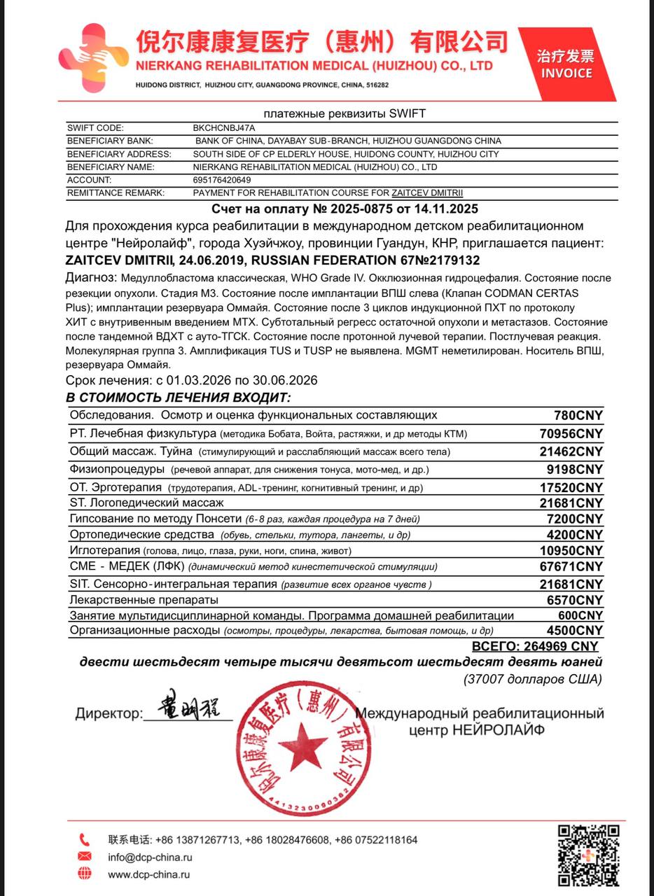 Я едва не потеряла своего сына. И теперь он снова на грани. 😔Моему мальчику всего 5 лет. Когда врачи поставили диагноз — рак мозга — я думала, что потеряю его сразу. Он был храбр, он боролся, но болезнь не отпускает. Шесть блоков химиотерапии… Мы пережили ад. Но это не конец. 😢Теперь его нога укорочена, и он не может даже встать на неё. Я смотрю на своего сына и понимаю, что каждый день может стать последним. Его жизнь в руках врачей, и только операция в Грузии может вернуть ему шанс на нормальное будущее. 😞Но эта операция стоит 1 400 000 рублей. Мы не можем собрать такую сумму. Каждый день без этой операции — это шаг к тому, чтобы потерять его навсегда. Я не могу смотреть, как он страдает. Я не могу больше слышать его боль. 💔Он слишком молод, чтобы быть осуждённым на мучения и инвалидность. Он заслуживает быть здоровым, счастливым ребёнком. Я умоляю, не дайте мне потерять его. Помогите спасти моего сына, он не выживет без вас. 🙏